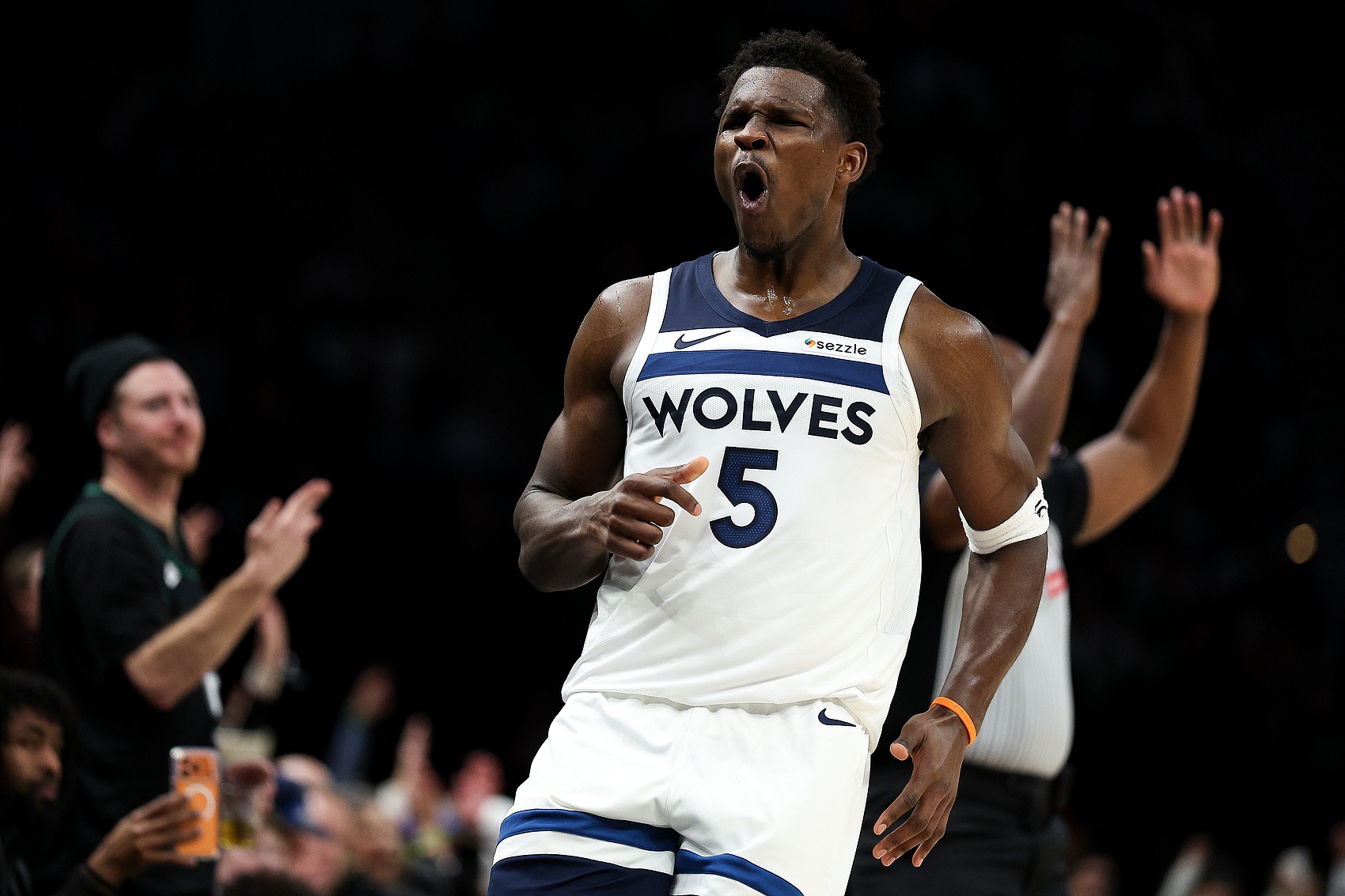 1月12日讯 NBA常规赛,森林狼在主场以104-103险胜马刺,爱德华兹在场边接受了媒体采访。